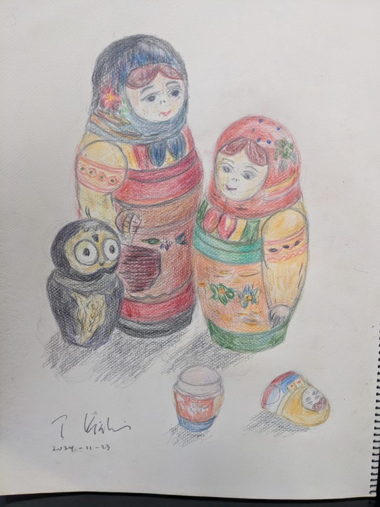 杉並の絵画サロン【えふで】の作品展示 創作 X Facebook はてブ LINE Pinterest コピー 2024.11.242024.12.02 11月23日かなり難儀したマトリョーシカの作品です。ご観賞いただければ幸いです。